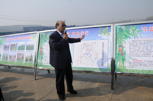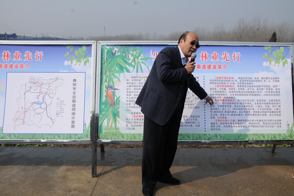 舞钢市副市长世利平介绍了舞钢市生态廊道建设的规模、建设标准、栽植模式、补助政策、经营模式及管护措施。